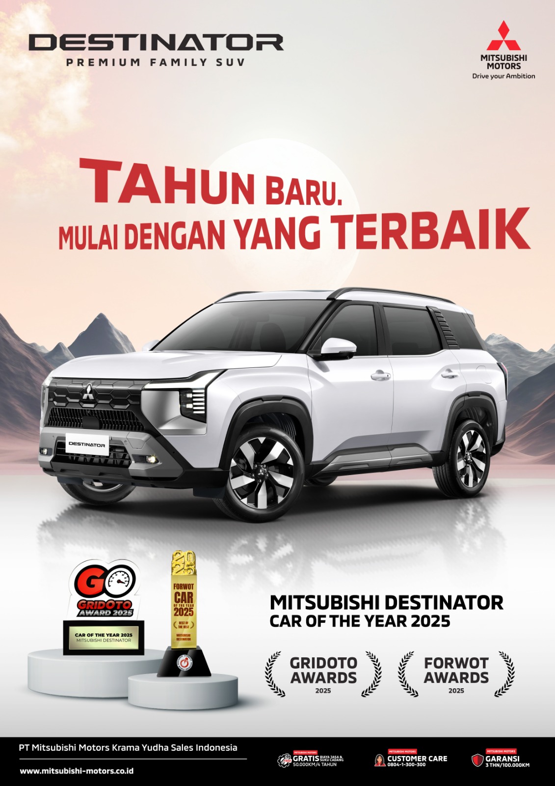 Mitsubishi Destinator adalah SUV keluarga dengan tiga baris kursi yang dirancang untuk pasar berkembang, menawarkan desain yang kokoh dan interior yang nyaman. Dilengkapi dengan mesin turbo 1.5 liter dan fitur keamanan canggih, mobil ini bertujuan memberikan kepercayaan diri dalam menjelajahi berbagai tujuan
